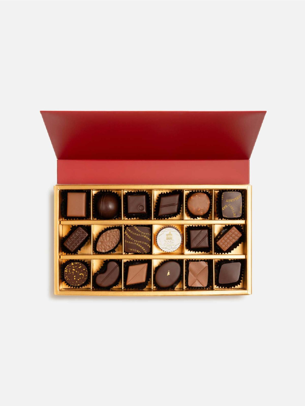 3段ボックスの中に、一口サイズの板チョコレート「キャレ ド ショコラ」や、2025年限定フレーバーをすべて含むショコラ・フレなどを豪華に詰め合わせました。可愛らしいビジュアルに美味しさ詰まった一箱です。
