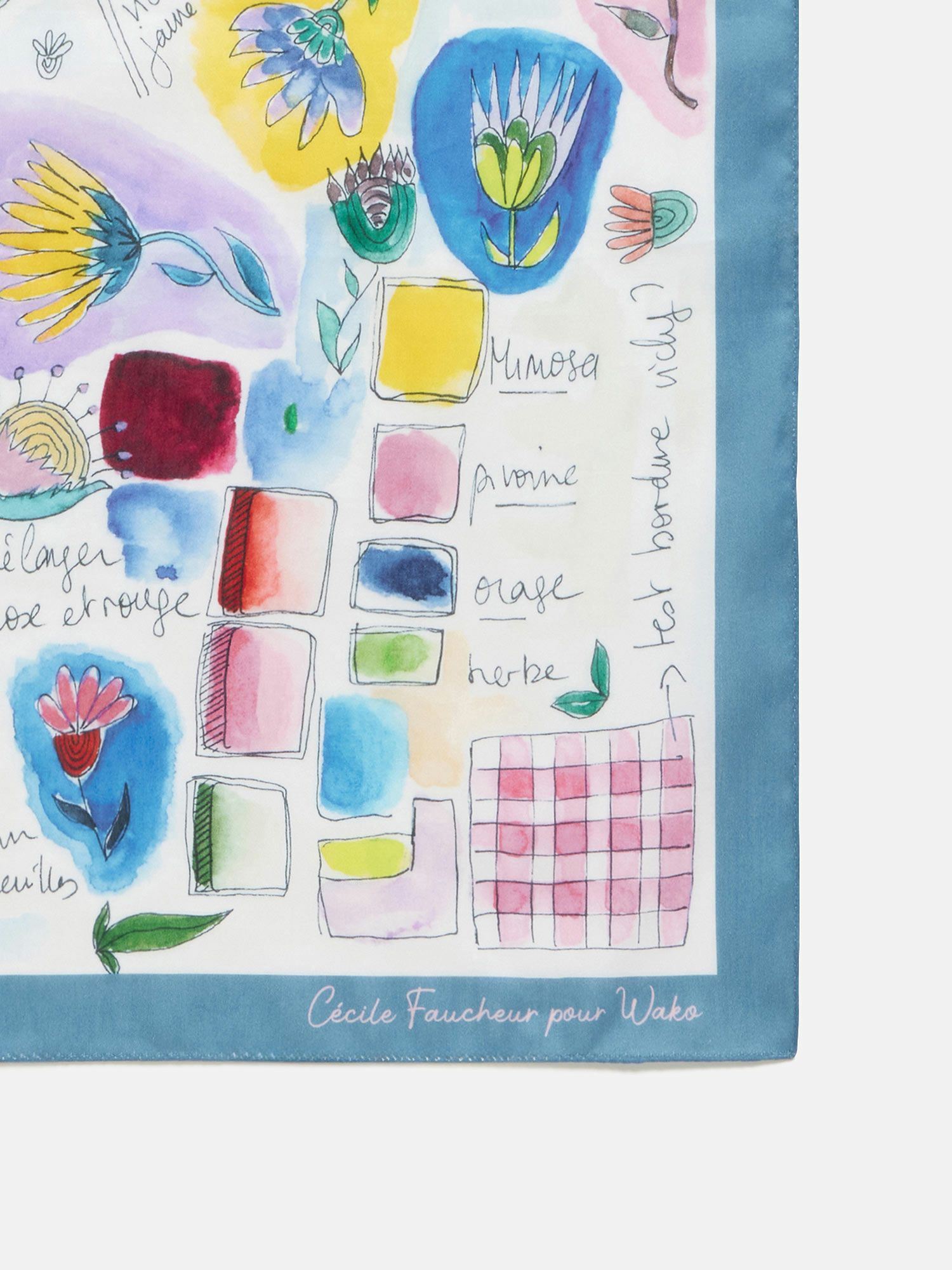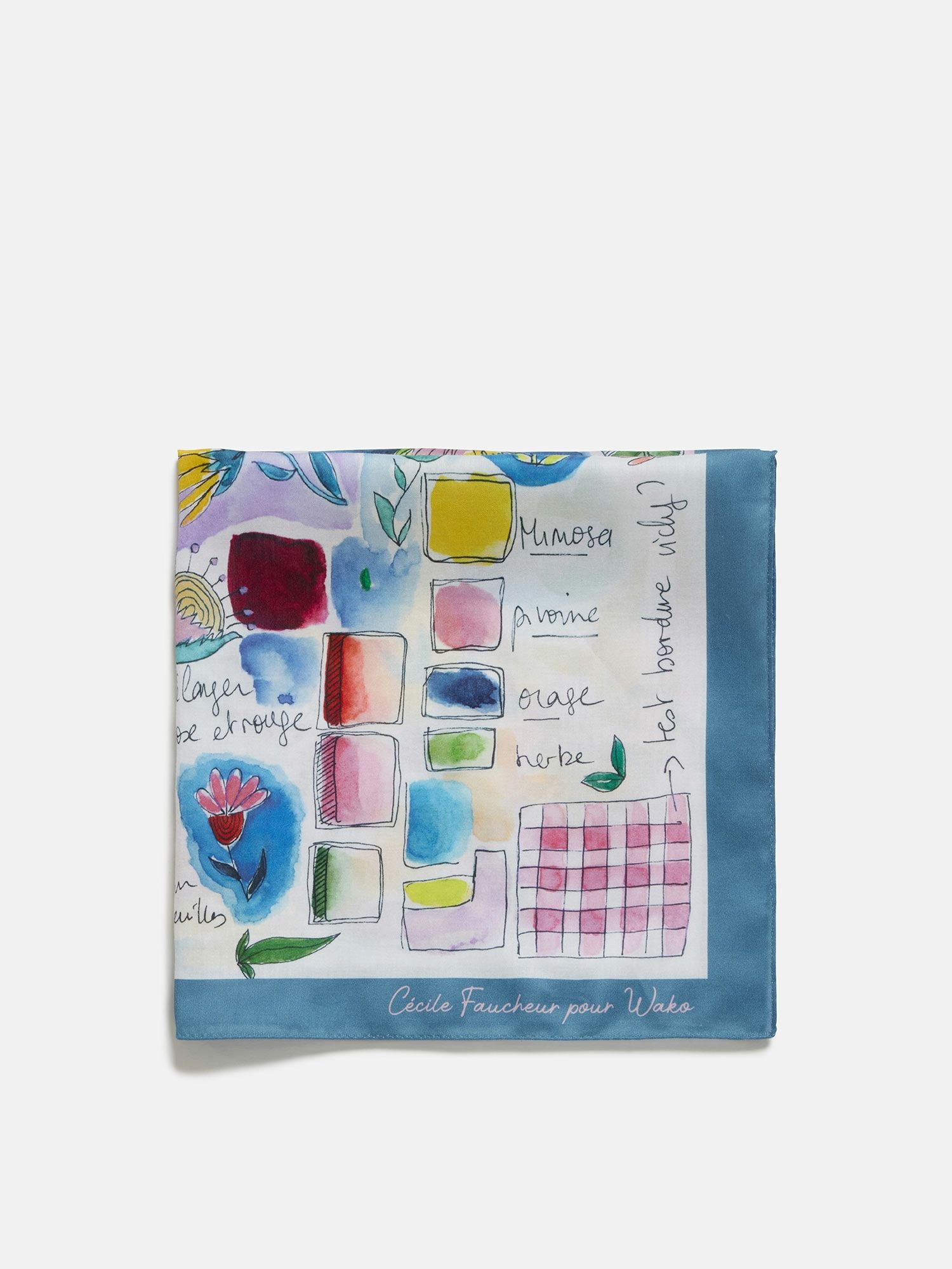 ハンカチ「CARNET DE RECHERCHES」 ブルー