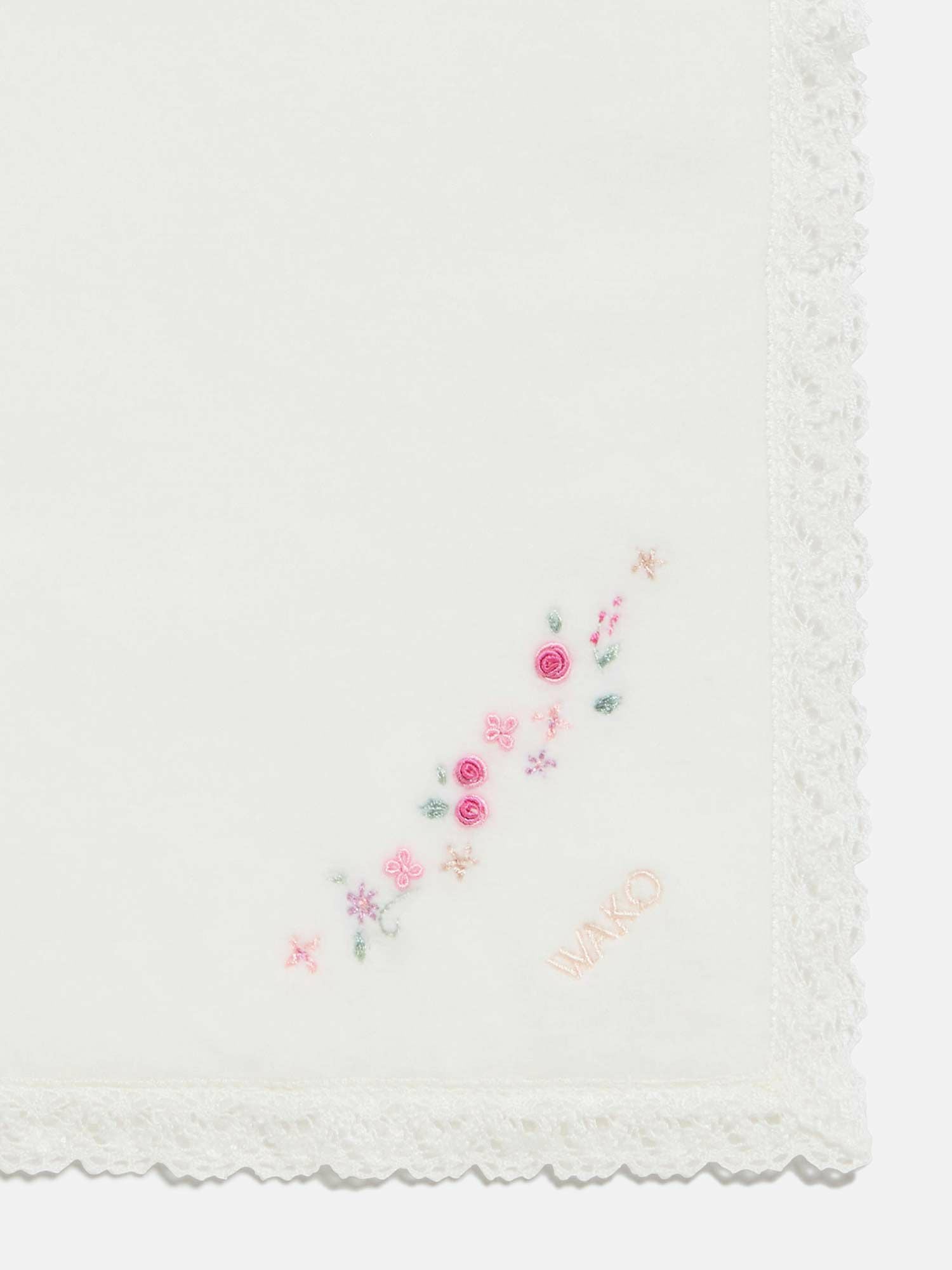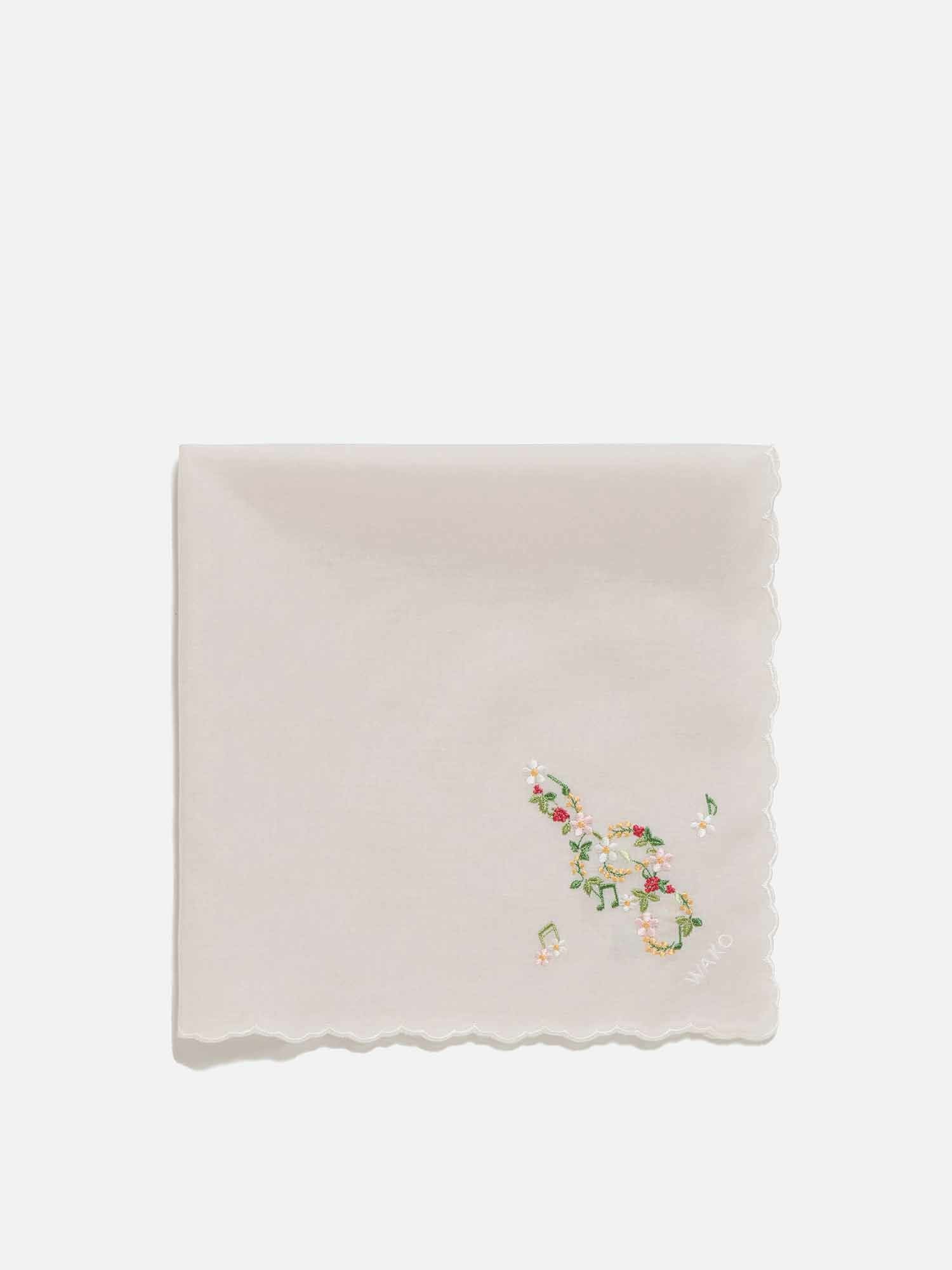 手刺繍ハンカチ ホワイト