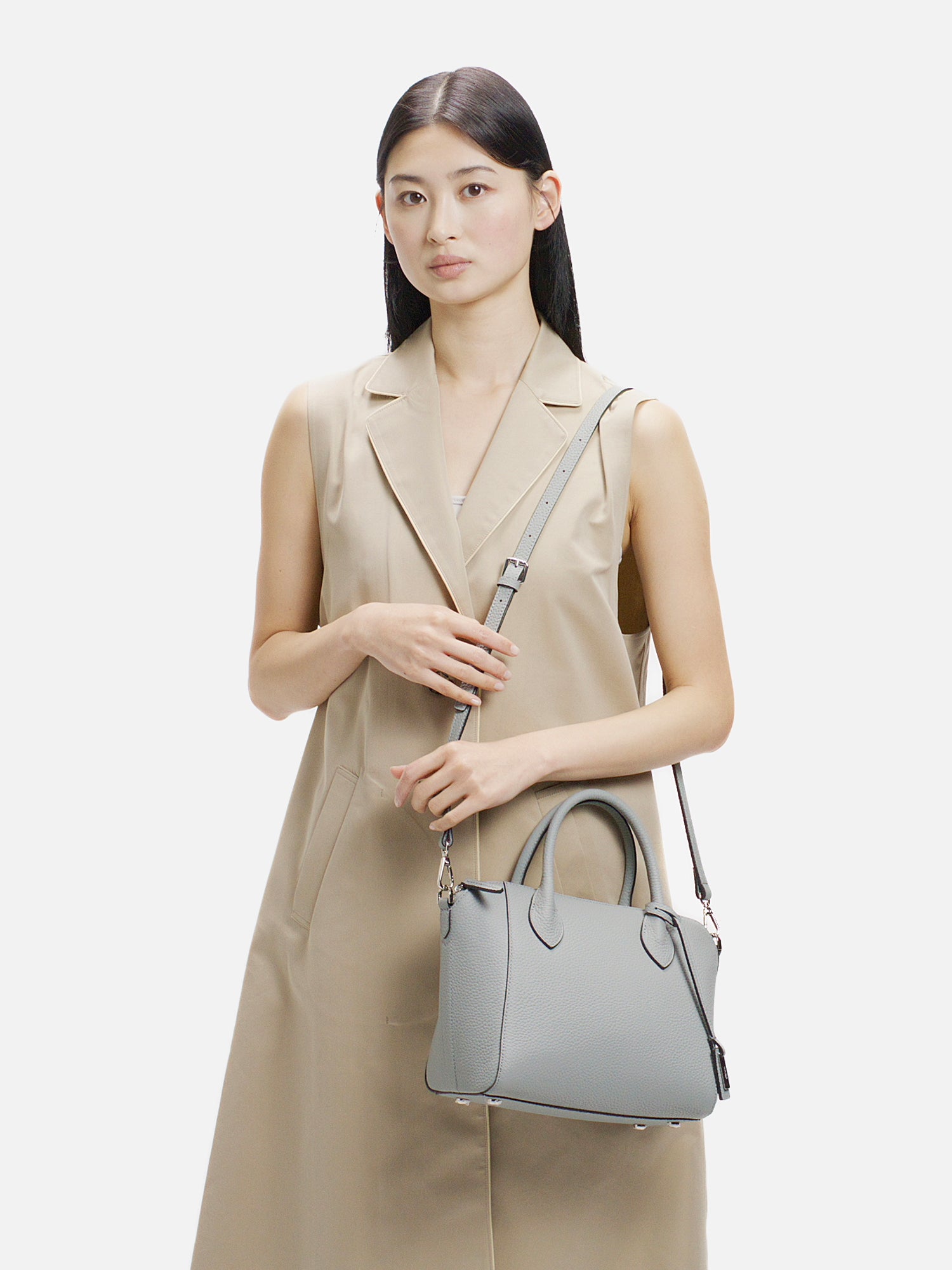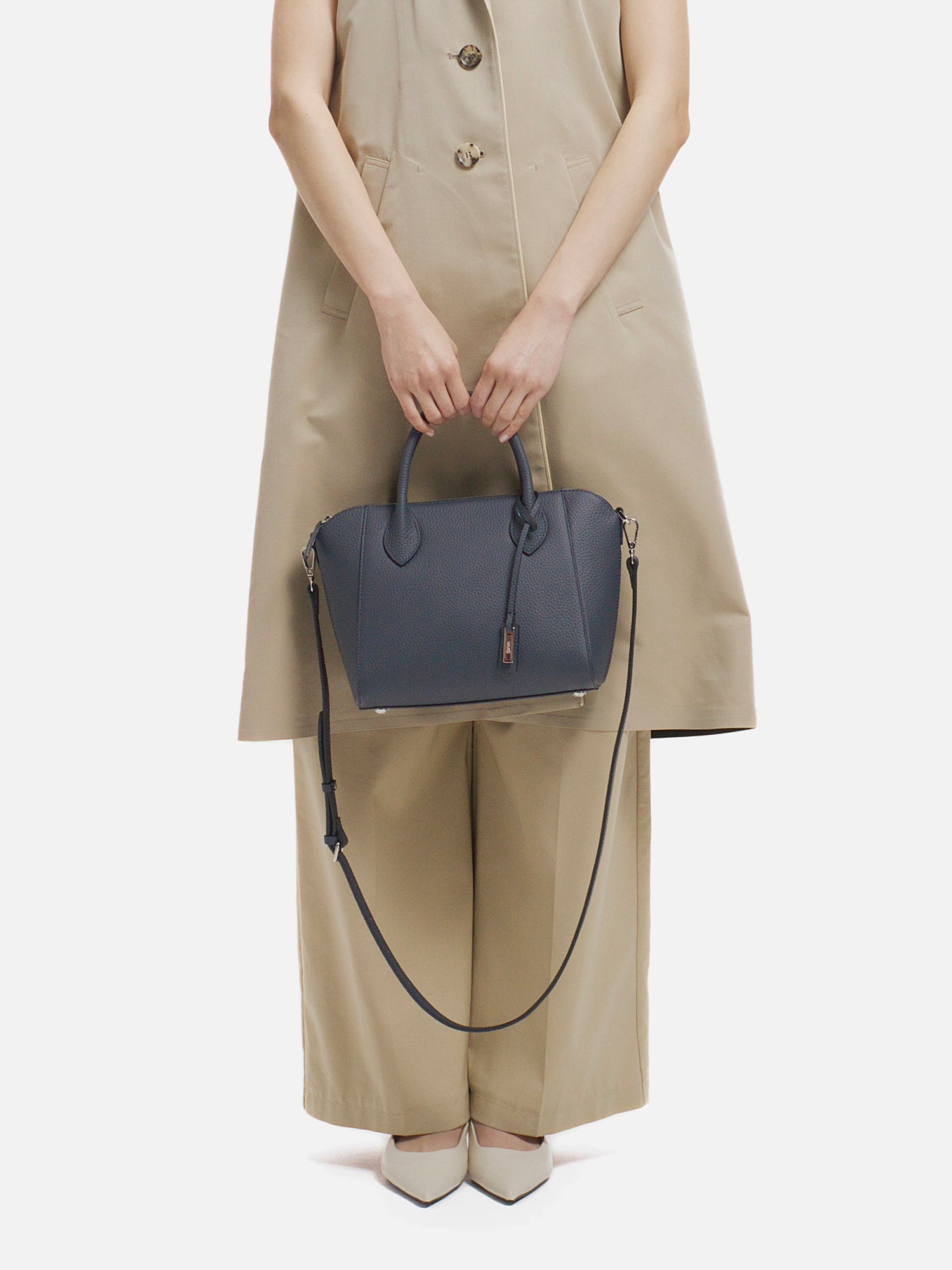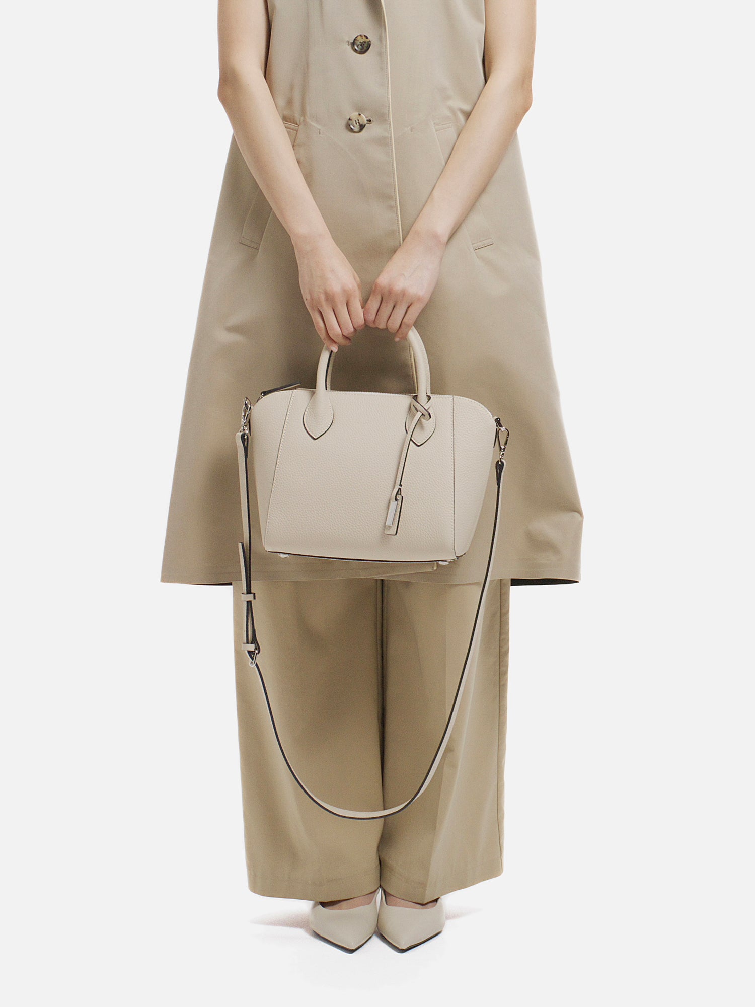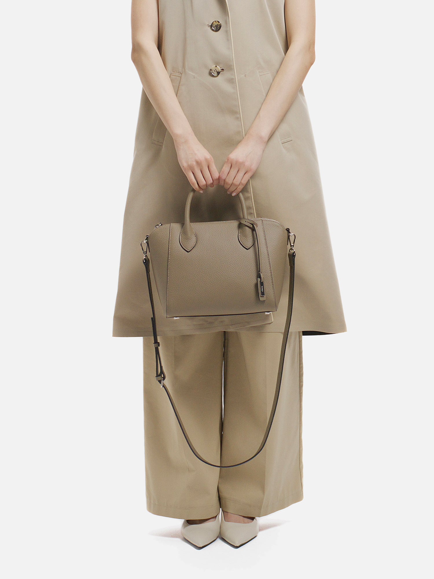 程よい厚みが生み出す美しいフォルムが、上品な佇まいを演出するショルダーバッグ。 上質で柔らかな素材に加え、必要なものをしっかり収納できる日常の使い勝手の良さも魅力。 取り外し可能なストラップで、装いに合わせて持ち方を選べ、さまざまなシーンで活躍します。
