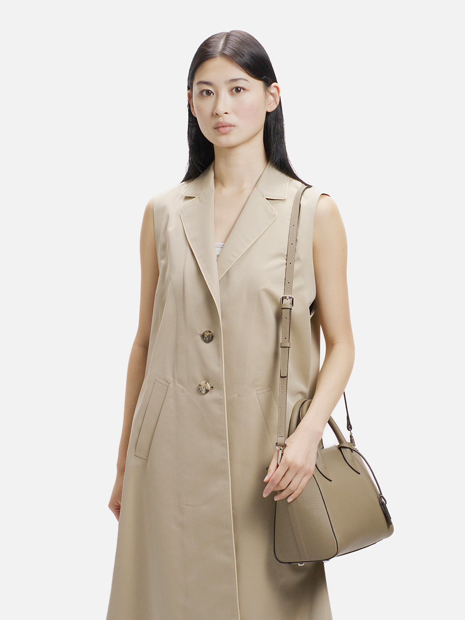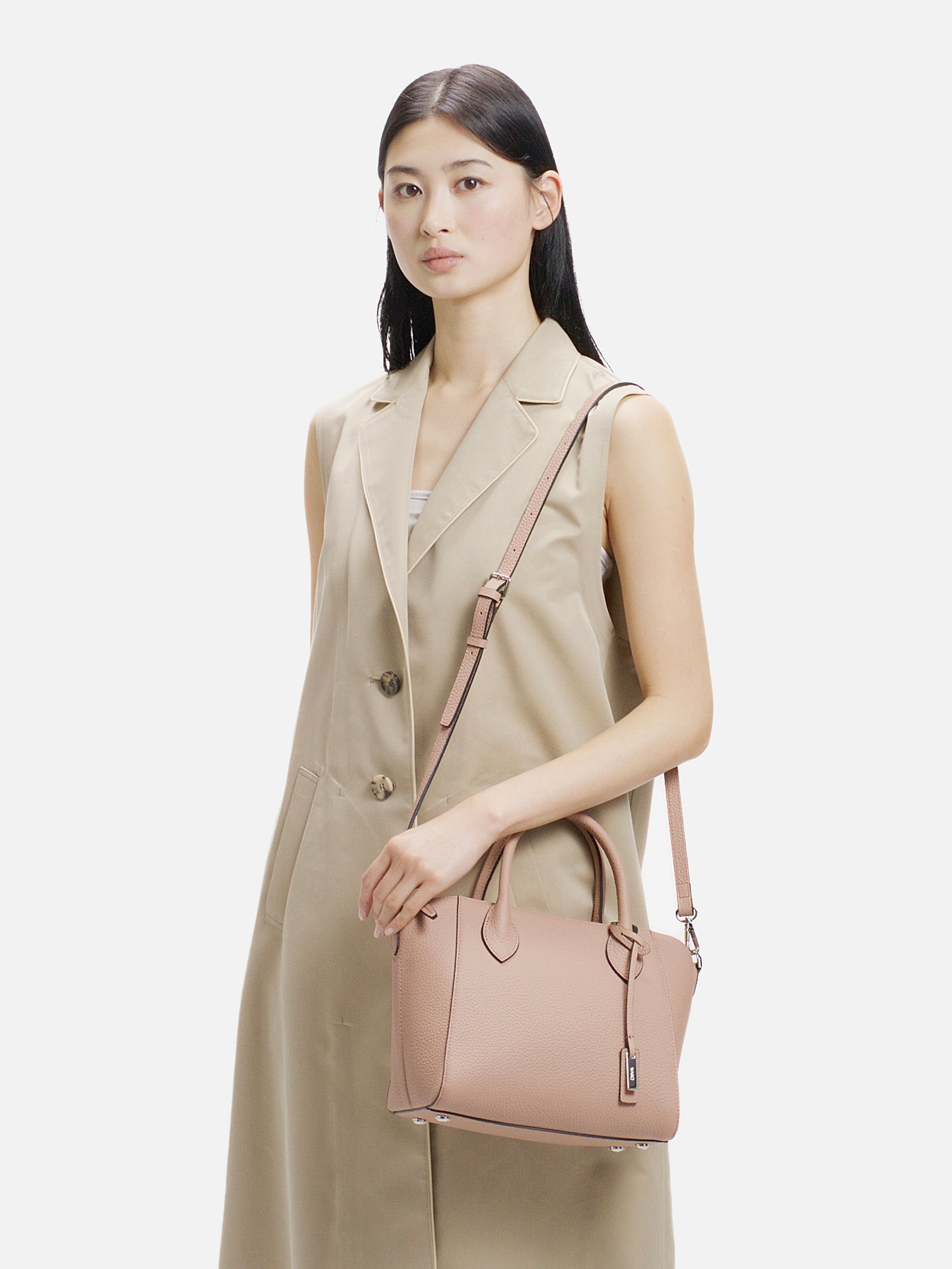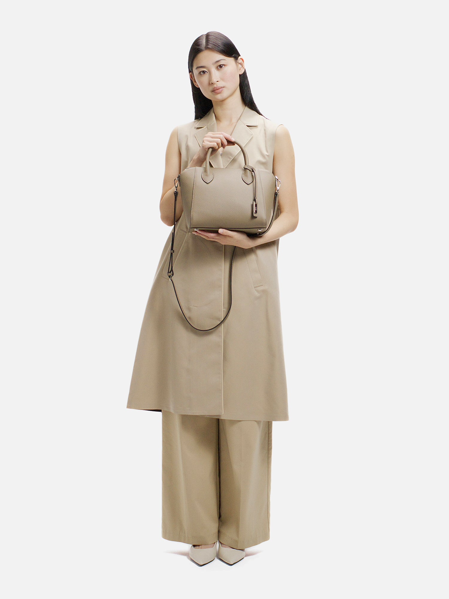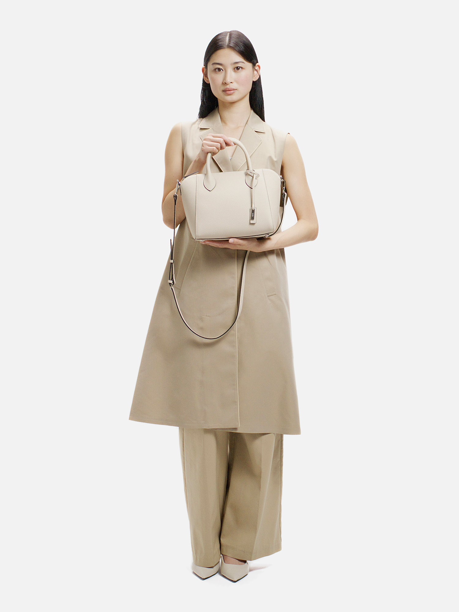 程よい厚みが生み出す美しいフォルムが、上品な佇まいを演出するショルダーバッグ。 上質で柔らかな素材に加え、必要なものをしっかり収納できる日常の使い勝手の良さも魅力。 取り外し可能なストラップで、装いに合わせて持ち方を選べ、さまざまなシーンで活躍します。