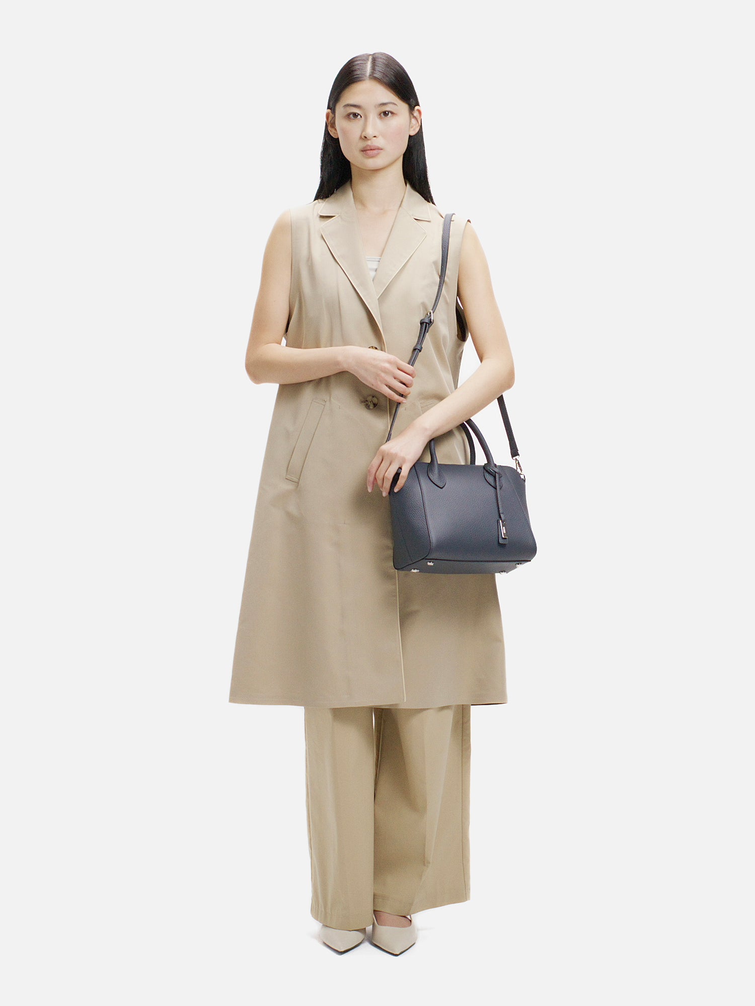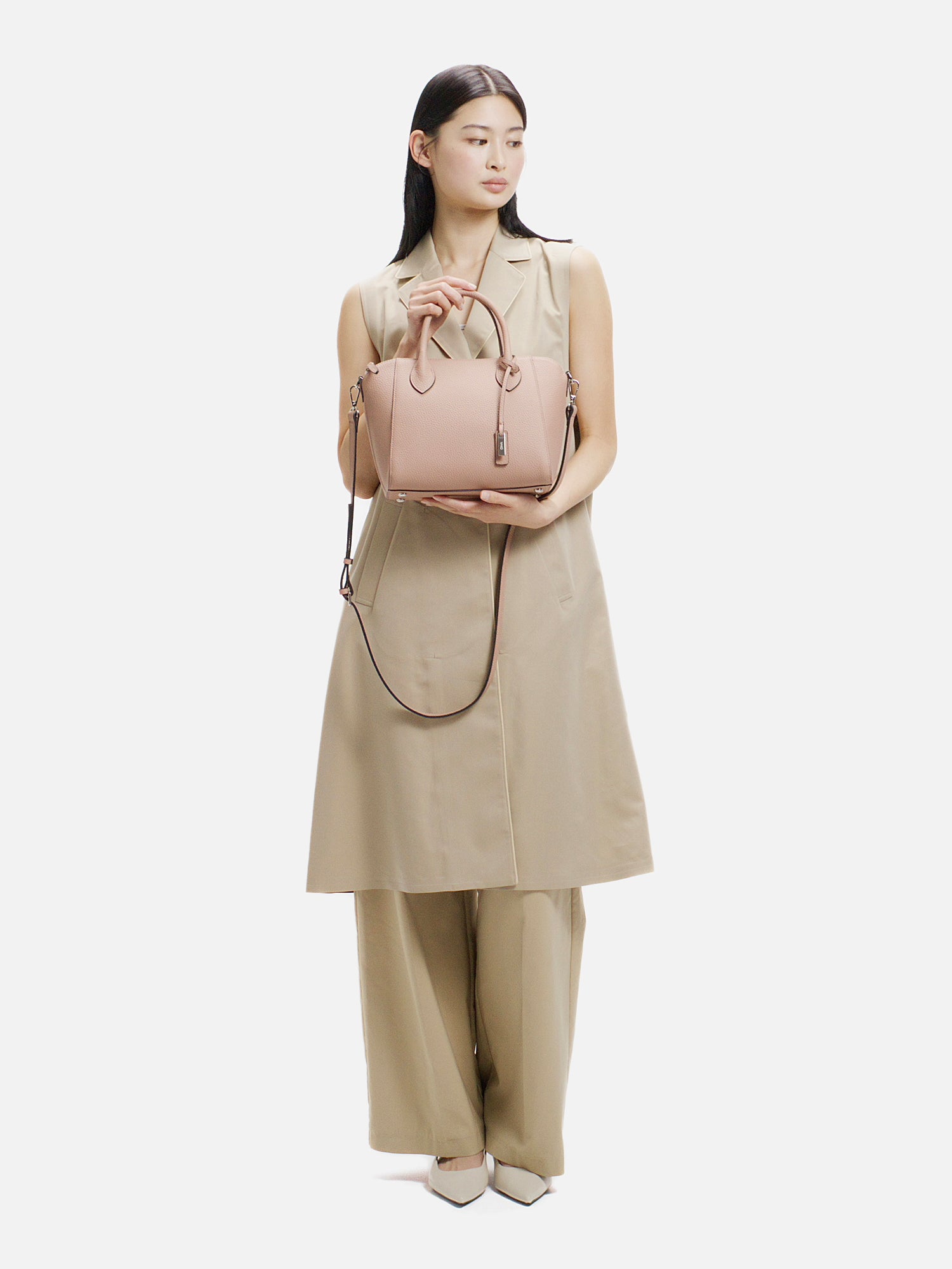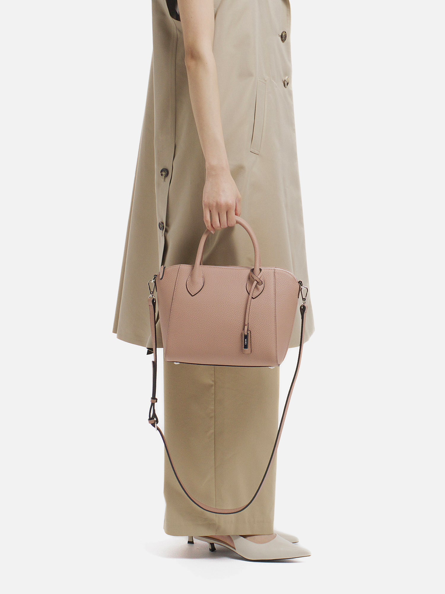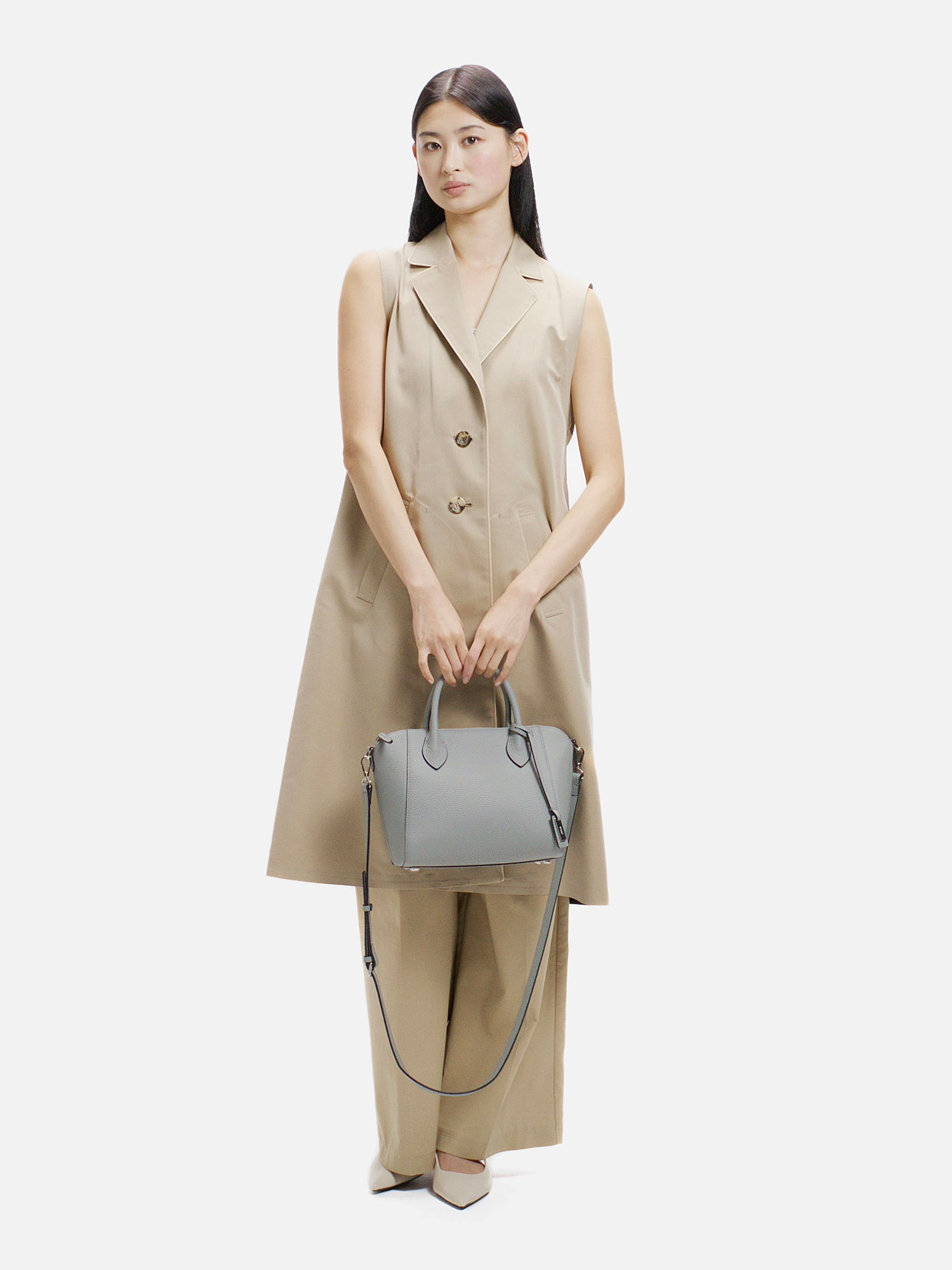 程よい厚みが生み出す美しいフォルムが、上品な佇まいを演出するショルダーバッグ。 上質で柔らかな素材に加え、必要なものをしっかり収納できる日常の使い勝手の良さも魅力。 取り外し可能なストラップで、装いに合わせて持ち方を選べ、さまざまなシーンで活躍します。