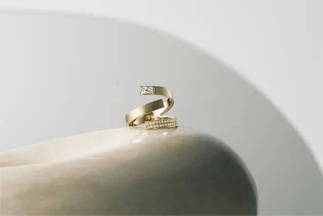 瑞々しい輝きで人気を集める「アショカダイヤモンド」のジュエリー。 なかでもエタニティーリングは、それひとつで華やかで存在感十分ですが、実はさまざまなリングと好相性で、 重ねづけも楽しめる一品です。 豊富なデザインとおすすめの4つのコーディネート例をご紹介します。